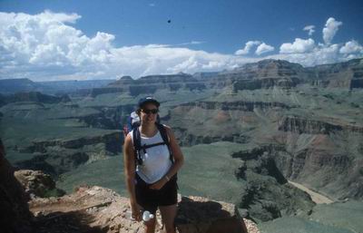 From that view it is still one hour to go, but already 3 hours steadyly downwards. You can already see the Colorado river. The brown something. |