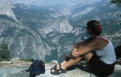 Anne-France looking down to the half dome and the beauty of yosimety. |
